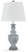 Details Made of terra cotta and wood with empire hardback fabric shade, Antiqued blue finish, 3-way switch, 1 E26 socket, type A bulb (not included); 150 watts max or LED equivalent; UL Listed, Due to the finishing process, some variations may occur, Assembly required