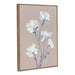 A compelling bloom unfolds in the Caspia framed painting. Thoughtful layers of acrylic paint reveal an abstract floral form punctuated by a striking blue stem. The minimal neutral background evokes organic charm, while a the warm toned frame promotes transitional style.