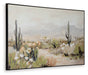Bring the beauty of the desert into your home. This captivatingly calm wall art showcases a serene landscape, complete with iconic cacti and delicate blooms. Crafted with meticulous detail, the hand embellished canvas is a perfect choice for those seeking a touch of southwestern charm.