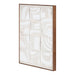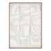 Inspired by the Dadaist movement and collage art, Unfold 2 is an homage to Ellsworth Kelly's "Cité," where ink strokes were brushed across a sheet of paper, cut into twenty squares, and randomly recomposed in a grid pattern. Shadowed tones add depth and dimension to the collage-like squares, while a neutral color palette and irregular shapes offer a softness to the sharp shapes—a remarkable abstract piece expertly finished with a solid pine frame.