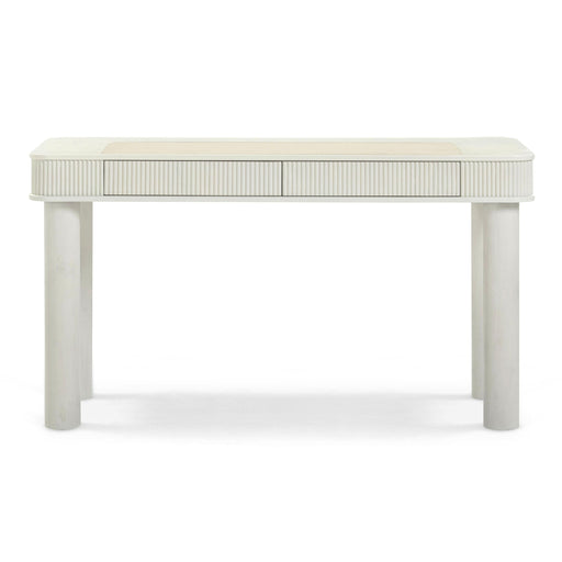 TOV FurnitureThe Sarah Desk brings sculptural beauty to your workspace with fluted edging, thick pillar legs, and a fully finished back that stuns from every an...