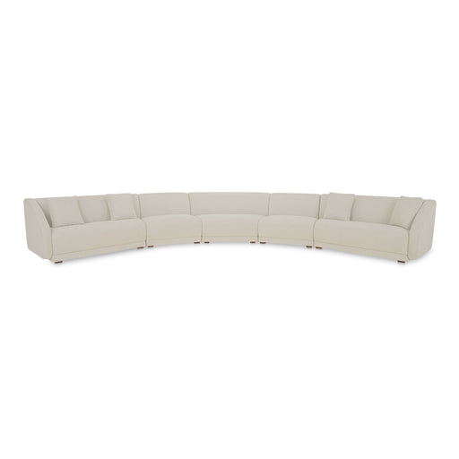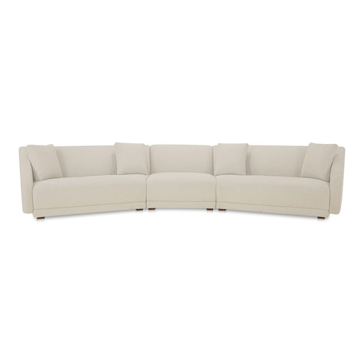 Moe's Home CollectionConstructed from solid beech and plywood, the Faye sectional's unique curved back and firm, fixed bench seat rest on petite, rounded rubberwood leg...
