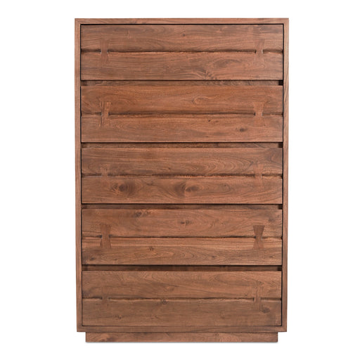 Moe's Home CollectionStorage solutions have never looked so good. The Madagascar chest of drawers features solid, live-edge acacia. A warm brown finish highlights the n...