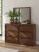 Details PCB857B6: Includes canopy, upholstered headboard, footboard, rails, posts and slats, Made with hardwood solids, mango wood veneer and MDF substrates , Side rails feature laminated solid hardwood slat support rails (or LVL) with glued and screwed blocking for added strength, Complex, rich dark brown finish, Foam headboard cushion with polyester upholstery , Measure room, including ceiling height, to ensure bed clears fans and light fixtures, Foam cushion with polyester upholstery , Foundation/box spring required, sold separately , Mattress available, sold separately , USB-A and USB-C charging ports, Power cord included; UL Listed, Assembly required, PCB857B1: Made with hardwood solids, mango wood veneer and MDF substrates , Complex, rich dark brown finish, Full-length metal rail pulls with matte black finish, 6 smooth-gliding drawers with fully finished interiors, dovetail construction and heavy-duty ball-bearing side glides (top drawers felt lined), Mirror attaches to back of dresser, Soft rounded pilasters, Raised plinth base,