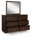 Details PCB857B6: Includes canopy, upholstered headboard, footboard, rails, posts and slats, Made with hardwood solids, mango wood veneer and MDF substrates , Side rails feature laminated solid hardwood slat support rails (or LVL) with glued and screwed blocking for added strength, Complex, rich dark brown finish, Foam headboard cushion with polyester upholstery , Measure room, including ceiling height, to ensure bed clears fans and light fixtures, Foam cushion with polyester upholstery , Foundation/box spring required, sold separately , Mattress available, sold separately , USB-A and USB-C charging ports, Power cord included; UL Listed, Assembly required, PCB857B1: Made with hardwood solids, mango wood veneer and MDF substrates , Complex, rich dark brown finish, Full-length metal rail pulls with matte black finish, 6 smooth-gliding drawers with fully finished interiors, dovetail construction and heavy-duty ball-bearing side glides (top drawers felt lined), Mirror attaches to back of dresser, Soft rounded pilasters, Raised plinth base, PCB857-92: Made with hardwood solids, mango wood veneer and MDF substrates, Complex, rich dark brown finish, Metal rail pulls with matte black finish, 2 smooth-gliding drawers with fully finished interiors, dovetail construction and heavy-duty ball-bearing side glides (top drawer felt lined), Soft rounded pilasters, Raised plinth base,