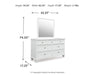 | Details | B680B20: Includes panel headboard, storage footboard, rails and roll slats , Made with hardwood solids and MDF substrate, Side rails feature laminated solid hardwood slat support rails (or LVL) with glued and screwed blocking for added strength , White painted finish, Round metal drawer knobs with satin nickel-tone finish, Tapered feet, 2 smooth-gliding drawers in footboard , Bed does not require additional foundation/box spring; accommodates most zero clearance adjustable bases with the addition of a bunkie board , Mattress available, sold separately, Assembly required, B680B1: Includes dresser and mirror, Made with hardwood solids and MDF substrate, White painted finish, 7 smooth-gliding drawers with dovetail construction and ball-bearing side glides, Round metal drawer knobs with satin nickel-tone finish, Tapered feet, Mirror attaches to back of dresser, Assembly required, | |