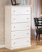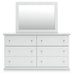 Details B139B47: Includes panel headboard/footboard and rails, Made with engineered wood (MDF/particleboard/plywood) and decorative laminate for the right balance of affordability and durability, Replicated solid white paint, Decorative laminate replicates natural or man-made material surfaces with consistent color, pattern and texture, Foundation/box spring required, sold separately, Mattress available, sold separately, Assembly required, B139B40: Includes dresser and mirror, Made of engineered wood (MDF/particleboard), Knobs with pewter-tone finish, Scalloped moulding, 6 smooth-operating drawers, Includes tipover restraint device, Mirror attaches to back of dresser; can also be mounted on wall horizontally or vertically, Safety is a top priority, clothing storage units are designed to meet the most current standard for stability, ASTM F 2057 (ASTM International), Drawers extend out to accommodate maximum access to drawer interior while maintaining safety, B139-46: Made of engineered wood (MDF/particleboard), Pewter-tone knobs, Scalloped moulding, 5 smooth-operating drawers, Small Space Solution, Includes tipover restraint device, Safety is a top priority, clothing storage units are designed to meet the most current standard for stability, ASTM F 2057 (ASTM International), Drawers extend out to accommodate maximum access to drawer interior while maintaining safety, B139-91: Made of engineered wood (MDF/particleboard), Pewter-tone knobs, 1 smooth-operating drawer, 1 storage cubby, Scalloped moulding, Small Space Solution,