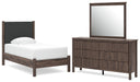 Pamytta Twin Upholstered Panel Platform Bed, Dresser and Mirror