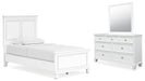 Details B680B6: Includes twin panel headboard, footboard and rails, Made with hardwood solids and MDF substrate, White painted finish, Tapered feet, Foundation/box spring required, sold separately, Mattress available, sold separately, Assembly required, Bed is compatible with an adjustable base, B680B1: Includes dresser and mirror, Made with hardwood solids and MDF substrate, White painted finish, 7 smooth-gliding drawers with dovetail construction and ball-bearing side glides, Round metal drawer knobs with satin nickel-tone finish, Tapered feet, Mirror attaches to back of dresser, Assembly required,