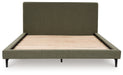 Nostalgic style, retooled for today’s trends. This king upholstered bed puts an elevated twist on mod aesthetics. Its chic sage green hue reflects the mid-century vibes you love, while the low profile incorporates contemporary motifs. Roll slats round out the design with added convenience, eliminating the need for a box spring. With this bed, you can build your bedroom into a modern haven with a touch of retro-cool flair.