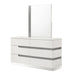 The Paradox Mirror is a perfect blend of contemporary style and superior functionality. Featuring a gloss laminate finish, it offers a sleek, modern look with the added benefits of scratch and water resistance. This mirror is constructed using a combination of solid and manufactured woods, ensuring long-lasting durability. It utilizes low distortion glass to provide a clear reflection, enhanced by the glittery mylar inlay. This mirror not only adds a touch of elegance to any room but also complements the Paradox collection, transforming your space into a high-style retreat.