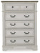 Traditional design. Casual appeal. You can have it all with this chest of drawers. A relaxed two-tone aesthetic merges with ornate profiled drawer fronts and pilasters to give the distinctive piece an allure all its own. Expansive drawers with quality dovetail construction and dark bronze-tone hardware reflect attention to detail from the inside out.