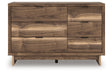 Nostalgic style, retooled for today’s trends. This dresser puts an elevated twist on mod aesthetics. Its warm brown tones reflect the mid-century vibes you love, while the angular base incorporates contemporary motifs. Integrated drawer handles round out the look in sleek style. With this dresser, you can build your bedroom into a modern haven with a touch of retro-cool flair.