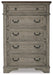 Cottage quaint styling and quality construction make this chest of drawers a dream come true. A two-tone finish provides rustic warmth, with an antiqued gray body and a rich, deep walnut on the top. Framed drawer fronts and dark bronze-tone hardware marry classic elegance and homey charm. Five smooth-gliding drawers are crafted with quality dovetail construction.