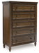 | Details | Made with hardwood solids, veneers and MDF substrates, Brown finish, Oil-rubbed bronze-tone knobs, 5 drawers with fully finished interior, dovetail construction and heavy duty ball-bearing side glides (top drawer felt lined), Turned feet | |