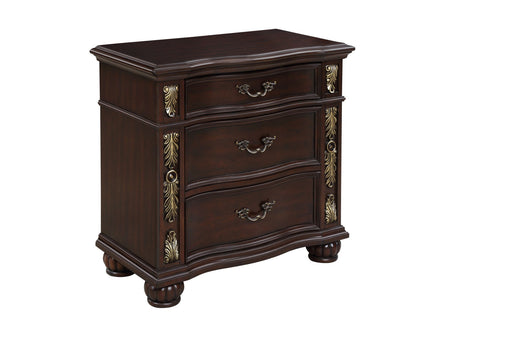 New ClassicThe Bella Notte 3-Drawer Nightstand in mahogany brown showcases Italian Baroque elegance with timeless craftsmanship. Crafted from solid poplar, ma...
