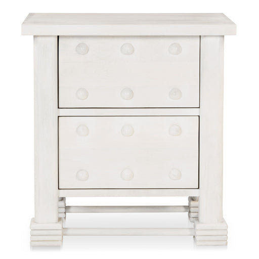 Moe's Home CollectionFrench-inspired elements and circular motifs enrich the Clement nightstand's oversized, chunky design. Crafted from mango wood with a whitewash fin...