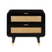 Drawing inspiration from the ever classic mid-century style, the Christine nightstand adds a retro look to any space its placed. This nightstand features spacious drawers, a black Acacia finish embellished with cane webbing and conical legs to complete the look.