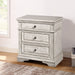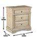Highland Park features vintage styling in a classical bedroom collection. Sturdy construction using hardwood solids and veneers in a distressed rustic finish. The nightstand offers three drawers with side mounted roller bearing drawer glides for smooth open and closing and a convenient USB and electrical port on the back. Gorgeous shaped moldings and framed drawer fronts accented by soft pewter drawer knobs, create an elegant farmhouse style.