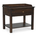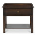 Staying true to traditional dimensions but elevated with leggy, modern proportions, the Maeve nightstand features distinctive lip detailing and an added shelf to harmonize its height. Crafted from mango wood and accented with brass-finished iron handles, it blends classic appeal with fresh touches for a sophisticated fusion.