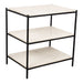 The Trine nightstand builds a story around elemental bursts of marble and iron. Three tiers of white marble are joined together by a sturdy semi-gloss iron frame to create something that is as functional as it is elegant. This versatile nightstand keeps things neat and organized in the bedroom but would look great in any room setting.