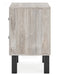 Details Made with engineered wood (MDF/particleboard/plywood) and decorative laminate for the right balance of affordability and durability, Light gray finish over a replicated oak grain with authentic touch; base has matte black finish with subtle replicated wood grain, Decorative laminate replicates natural or man-made material surfaces with consistent color, pattern and texture, Handles with matte black finish, 2 smooth-gliding drawers, Drawer interiors are lined with a faux linen laminate for a clean, finished look, USB and wireless charging options, Power cord included; UL Listed, Assembly required