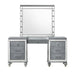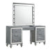 The Valentino Vanity is a stunning addition to any bedroom or dressing area. Made from a combination of manufactured and solid woods with decorative embossed inlays, this set ensures long-lasting quality and distinctive style. The gleaming finish, mirrored trims, crystal-studded drawer pulls, and alligator embossed inlays evoke a Hollywood glam appeal. The seven-drawer vanity table provides ample storage for cosmetics and accessories, including a velvet-lined drawer for jewelry, making it as practical as it is stylish. This exquisite vanity set seamlessly combines functionality with a touch of star quality, bringing an elegant and glamorous touch to your space.