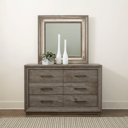 Liberty FurnitureInviting and inspirational describes the Modern Farmhouse dresser and mirror. Crafted of poplar solids with knotty oak veneers this kit features a ...