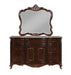 The Constantine Marble Top 6 Drawer Dresser by Royal Classics offers timeless elegance and exceptional craftsmanship. This large dresser is crafted from a blend of Solid Pine and Fancy Face Birch Veneers, ensuring heirloom quality and long-lasting beauty. The multi-step finish accentuates the natural allure of the wood, while burnished gold tipping on the intricate carvings adds a luxurious touch. The French Traditional design, featuring elaborate 18th-century Rococo style ornamentation, infuses your home with regal elegance. The drawers, constructed with French and English Dovetail Joinery, ensure durability and smooth operation on full-extension glides, with finished interiors providing snag-free storage. Sophisticated touches include a genuine marble top that follows the curved shaping of the furniture, bowfront drawers, and cabriole legs, completing the lavish design. This dresser combines traditional style with modern comforts, offering velvet-lined top drawers, cedar-lined bottom drawers, ample drawer size, and roomy storage behind the doors. The Constantine Dresser is a harmonious blend of opulence and practicality, making it an exquisite addition to any bedroom.