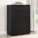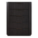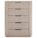 The Henry 5-Drawer Chest offers modern elegance and practicality with vertical storage. Made from oak veneers, Asian hardwoods, and engineered woods, it features reeded surfaces, rounded corners, and a plinth base. Five drawers, including a felt-lined top drawer, provide organized storage with smooth side metal glides and safety stops. Kiln-dried wood and mortise-and-tenon joinery ensure stability, while the hand-stained finish enhances the natural grain. Oil-rubbed brass pulls add style, and an anti-tip restraint kit ensures safety.