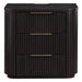 The Henry Nightstand is a sturdy and stylish bedside companion, combining functionality with modern elegance. Crafted with oak veneers in a smoky espresso finish, it features reeded surfaces, rounded corners, and a sturdy plinth base. Three drawers offer ample storage, including a felt-lined top drawer to protect valuables. For added convenience, the nightstand includes USB-A and USB-C ports, plus two electrical outlets, perfect for overnight charging.