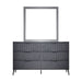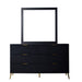 The Kailani 2 Piece Dresser and Mirror Set is a stunning combination of modern design, durability, and eco-friendly craftsmanship, making it an elegant addition to any bedroom. This set includes a dresser and mirror, both expertly crafted from a blend of solid rubberwood, engineered wood, and eco-friendly decorative laminate. The durable construction ensures the furniture maintains its beauty with minimal maintenance, offering superior resistance to scratches, moisture, and stains. The modern minimalist design, featuring clean lines, a sleek silhouette, and a chic ribbed texture, is enhanced by slim metallic handles and tapered legs, adding a sophisticated yet functional touch to your space. The dresser’s textured drawers, wrapped in luxurious 100% Polyester Velvet and accented by gleaming gold pulls and angled legs, bring a touch of glamour to the room. The low-distortion mirror offers crystal-clear reflection, combining both function and elegance. Thoughtfully designed for seamless form and function, the spacious drawers glide effortlessly on full-extension slides and are reinforced with durable dovetail joinery, ensuring smooth operation and lasting strength. The Kailani Dresser and Mirror Set is a perfect blend of style, function, and sustainability, making it a standout choice for your bedroom.