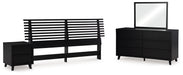 Details B1013-158: Made with engineered wood (MDF/particleboard/plywood) and decorative laminate for the right balance of affordability and durability, Matte black finish with subtle replicated wood grain, Decorative laminate replicates natural or man-made material surfaces with consistent color, pattern and texture, ¼" bolts (not included) are needed to attach headboard to your existing bed frame, Minor assembly required, B1013B11: Includes dresser and mirror, Made with engineered wood (MDF/particleboard/plywood) and decorative laminate for the right balance of affordability and durability, Matte black finish with subtle replicated wood grain, Decorative laminate replicates natural or man-made material surfaces with consistent color, pattern and texture, 6 smooth-gliding drawers, Drawer interiors are lined with a faux linen laminate for a clean, finished look, Integrated drawer pulls, Framed front and pilasters, Mirror attaches to back of dresser; can also be mounted on wall horizontally or vertically, Safety is a top priority, clothing storage units are designed to meet the most current standard for stability, ASTM F 2057 (ASTM International), Drawers extend out to accommodate maximum access to drawer interior while maintaining safety, Minor assembly required, B1013-92: Made with engineered wood (MDF/particleboard/plywood) and decorative laminate for the right balance of affordability and durability, Matte black finish with subtle replicated wood grain, Decorative laminate replicates natural or man-made material surfaces with consistent color, pattern and texture, 2 smooth-gliding drawers, Drawer interiors are lined with a faux linen laminate for a clean, finished look, Integrated drawer pulls, Framed front and pilasters, USB and wireless charging options, Power cord included; UL Listed, Minor assembly required,