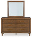 | Details | B615B6: Includes upholstered panel headboard and footboard , Solid wood frame, Due to the use of natural wood materials, some variations may occur , Frame with medium brown wood tone finish, Polyester upholstery, Tapered legs, Foundation/box spring required, sold separately , Mattress available, sold separately, Assembly required, B615B1: Includes dresser and mirror, Made with hardwood solids, mango wood veneer and MDF substrates, Medium brown wood-tone finish, 6 drawers with fully finished interior, dovetail construction and heavy duty ball-bearing side glides, Round tapered legs, Mirror attaches to back of dresser, B615-46: Made with hardwood solids, mango wood veneer and MDF substrates, Medium brown wood-tone finish, 5 drawers with fully finished interior, dovetail construction and heavy duty ball-bearing side glides, Round tapered legs, B615-92: Made with hardwood solids, mango wood veneer and MDF substrates, Medium brown wood-tone finish, 2 drawers with fully finished interior, dovetail construction and heavy duty ball-bearing side glides, Round tapered legs, 110V power supply with USB-A and USB-C charging ports, Power cord included; UL Listed, | |