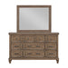 The Mariana Two-Piece Dresser and Mirror Set is a masterful blend of timeless craftsmanship and versatile design, making it a standout addition to any bedroom. Skillfully crafted from solid Acacia wood and enhanced with Acacia veneers, this set features a rich, hand-distressed finish with warm walnut accents that infuse traditional elegance with rustic charm. The dresser offers spacious drawers, built with masterful dovetail joinery, smooth interiors for snag-free storage, and precision-engineered, full-extension glides for effortless functionality. Thoughtful touches like velvet-lined top drawers and a removable jewelry caddy add both elegance and practicality. The accompanying mirror, framed with extra-wide picture frame moldings and low-distortion beveled glass, delivers a flawless reflection, adding a touch of sophistication to the set. Perfectly balancing style and durability, this dresser and mirror set serves as a captivating focal point in any classic, cozy, or historically inspired space.