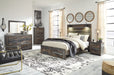 Drystan Queen Panel Bed with 2 Storage Drawers with Mirrored Dresser, Chest and Nightstand