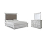 | Details | B777B1: Includes dresser and mirror, Made with solid wood, veneers and engineered wood, Distressed whitewash finish, Dark gray pewter-tone finished metal hardware, 7 smooth-gliding drawers, plus 2 small-scaled accessory drawers, Mirror attaches to back of dresser, Assembly required, B777B4: Includes queen upholstered headboard, panel footboard and rails, Made with solid wood, veneers and engineered wood, Distressed whitewash finish, Button tufted fabric upholstery, Nailhead trim, Foundation/box spring required, sold separately, Mattress available, sold separately, Assembly required, | |