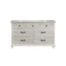 The Silver Sands Dresser combines durability and quality construction, crafted from solid pine, manufactured woods, and oak wood veneers for a strong and stable piece. Its transitional style merges clean, simple lines with a rustic wood finish, creating a calm and inviting atmosphere. The misty finish, achieved through a meticulous multi-step, hand-applied process, offers a light, weathered look that highlights the natural grain and mineral patterns of the wood. Elegant design features, including a raised base, full return and dentil moldings, and contrasting hardware, add a sophisticated touch. Heirloom-quality drawers with dovetail joinery and three-stage steel ball glides ensure smooth, full-extension operation and can support heavy loads. With seven spacious drawers, including velvet-lined top drawers to protect delicates, this dresser provides ample storage for clothing essentials. Combining style, durability, and functionality, this dresser is a practical and elegant addition to any bedroom.