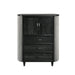 The Skyline Door Chest in Onyx blends bold design with functionality. Crafted from solid Rubberwood, engineered woods, and Ash Wood veneers, it’s built to last with a modern, sophisticated look. The Onyx Black finish with gray glazing enhances the wood grain for a luxe feel. Textured gray ribbed fabric contrasts beautifully with the dark wood. Behind the doors, spacious drawers with dovetail joinery and ball-bearing glides ensure smooth storage. A velvet-lined top drawer adds a refined touch. ?
