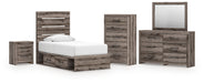 Graystorm Twin Panel Bed with Storage, Dresser, Mirror, Chest and Nightstand