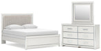 Zuraleus Queen Upholstered Panel Bed, Dresser and Mirror