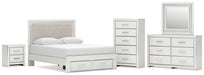 Zuraleus Queen Upholstered Panel Platform Storage Bed, Dresser, Mirror, Chest and Nightstand