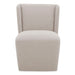 The Cormac rolling dining chair is all about comfort with a generously padded seat and backrest, a slight curve of the back and caster wheels that effortlessly glide across the floor. Crafted from high-performance fabric that is soft to the touch yet resilient against stains, spills, and daily wear.