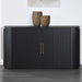 Experience the Colvin Server’s modern allure with gently rounded, reeded front doors, emanating elegance. This piece blends old Hollywood glamour with generous storage and European concealed hinges for a seamless aesthetic. Two adjustable shelves within offer practicality, while satin brass hardware accents add a touch of sophistication. Revel in its romantic charm while effortlessly concealing dining essentials.