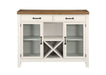 Instant storage and design come together in the Hyland Server. A two-tone Milk and Honey finish add a neutral touch to any room while offering generous storage and display area. Great for assisting in the dining area, this piece also works well as a TV Stand or Media Center with glass doors for remote control access. Adjustable shelves ensure a secure fit for plates or electronics. Removable wine rack offers excellent bottle storage or an open compartment when removed.