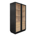 Inspired by the simple elegance of French Cleat handles, the Charlotte tall cabinet features a captivating two-tone design with a sleek black outer frame and natural interior. Tempered glass doors offer a stylish, protective showcase, while three interior drawers neatly store smaller belongings. With its modern and versatile design, this piece balances practical storage with graceful display.