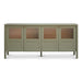 Inspired by classic cabinetry, the Hannah sideboard's thoughtful design balances transparency and concealment through artfully combined glass and solid panels. Crafted with a solid pine frame and oak veneer accents, this piece features slender dowel legs and simple bronze hardware.