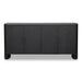 The William sideboard showcases a sleek, modern silhouette with a rounded edge frame and base. A herringbone pattern embellishes its door front, adding a touch of sophistication, while the sideboard's rich black stain finish exudes a sense of maturity and timelessness. A charming parquetry pattern adorns the exterior surfaces, infusing rustic elements into any living or dining space.