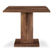 The May cafe table's unique double square top and rectangular post leg create an intriguing visual harmony. Crafted from rich walnut, the table exudes warmth and natural beauty. Subtle curves and angled edges offer ergonomic comfort, inviting lingering moments, effortlessly transitioning from cafe table to entryway accent.