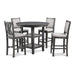 The Amy counter dining set is meticulously crafted of solid Rubberwood and Mindi veneers creating a durable and visually appealing dining set. The farmhouse bisque finish, achieved through a multistep process, gracefully adorns both the chairs and table, highlighting the inherent beauty of the wood grain. The 4-person seating arrangement around the spacious table, featuring two convenient storage shelves, is an ideal setting for family dinners and game nights. Comfort takes center stage with the counter chairs, featuring 100% polyester upholstered seat and back cushions, supported by solid wood legs reinforced with base stretchers that cleverly double as footrests. The distinctive design elements, including a fancy face reverse diamond veneer tabletop, interlocking double X frame chair back, and tapered table legs, add a touch of sophistication to elevate your dining space.